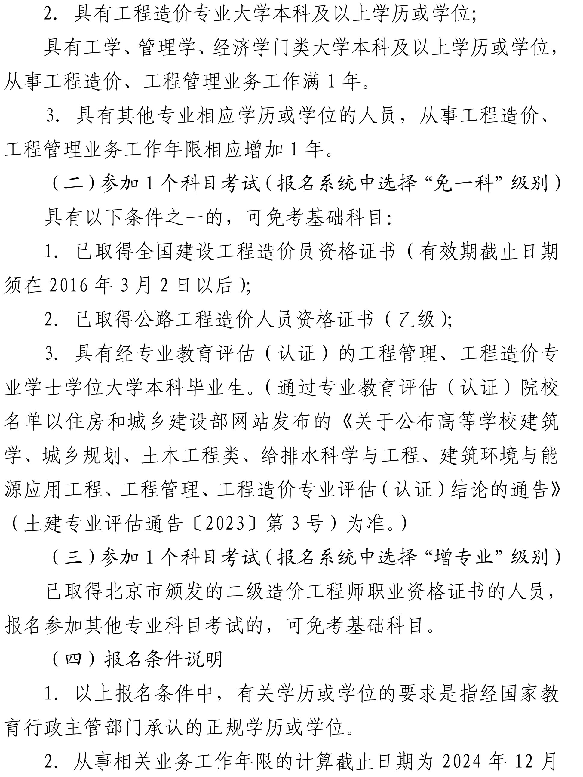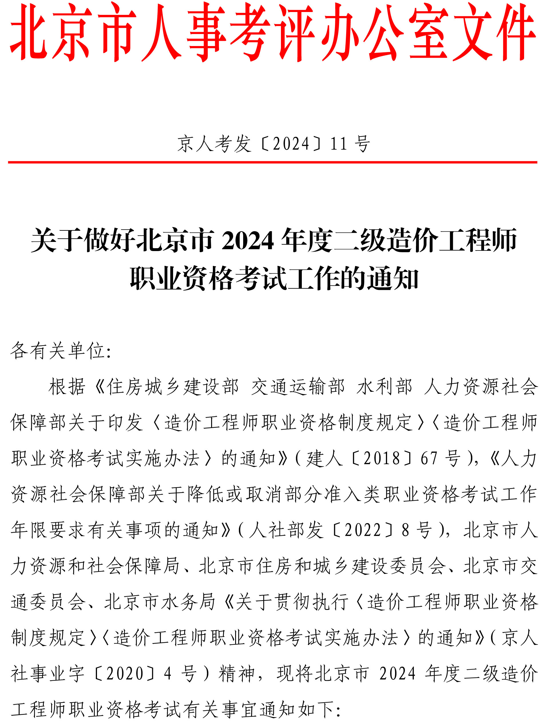 北京市2024年度二级造价工程师职业资格考试定于6月22日举行,报名相关安排如下: