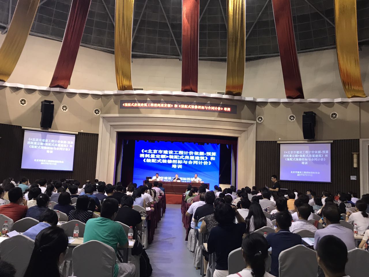 根据国务院的指导意见、建设部的通知及北京市实施意见等关于装配式建筑相关文件精神,为提高广大企业、从业人员对于装配式建筑定额计量、招投标与合同计价等方面的专业水平与技能,北京市建设工程招标投标协会(以下简称协会)于2017年7月11日,在北京建设大厦五层多功能厅举办了第二期《装配式房屋建筑工程预算消耗量定额》和《装配式装修招标与合同计价》培训活动。近百家企业,350余名业内同仁参加。