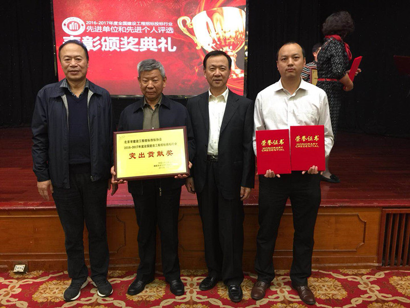 在随后的先进表彰及颁奖环节,协会收获颇丰。集体荣誉方面共收获三项大奖,分别是:2016-2017年度全国建设工程招标投标行业突出贡献奖、2016-2017年度全国建设工程招标投标行业先进单位、“筑龙杯”全国建筑市场与招标投标创新之路评选活动优秀组织奖。个人荣誉方面协会会长李仁友、代秘书长汤汉林、办公室主任孙蕊分别荣获2016-2017年度全国建设工程招标投标行业管理先进个人。另外协会有两人,在“筑龙杯”征文大赛中获奖:协会副秘书长唐腾骅同志的文章《深化设计工程招标结果远超原设计标准的处理案例及引发的思考》获得二等奖,翟霜梅同志的文章《浅谈互联网浪潮下的招投标制度创新——以北京市建设工程发包承包交易中心为例》获得优秀奖。以上荣誉奖项的获得是分会对协会工作的充分肯定与认可,也是协会全体员工勤奋努力工作的成绩与硕果。协会在李会长的领导下,在引领建设工程招标投标行业发展、规范市场行为、服务会员单位等方面走在了全国的前列。协会也将在未来的工作中认真贯彻落实十九大精神,持之以恒、砥砺奋进,始终把提高服务标准和质量作为第一要务,使协会各项工作更上一层楼!