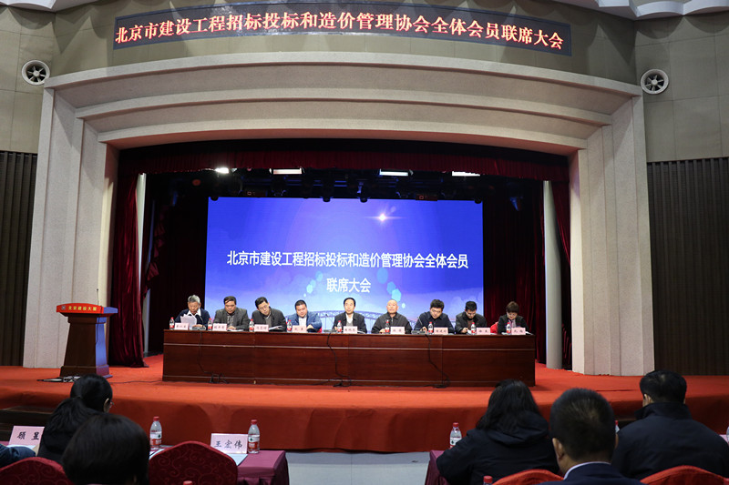 北京市建设工程招标投标协会(以下简称“京招协”)和北京市建设工程造价管理协会(以下简称“京价协”)全体会员联席大会(以下简称“联席会”)于2018年1月4日在北京建设大厦召开。市住建委委员陈现忠、市标办主任褚建好、市造价处处长冯志祥、市建管中心主任徐良、市交易中心主任胡平有、市住建委人事处副处长孔怡、市住建委市场处张超、京价协理事长兼联席会主席林萌、京招协会长兼联席会副主席李仁友、各区标办和交易中心、外省市驻京建管处等相关单位领导以及京招协和京价协副会长、会员单位代表、调解中心调解员等近五百人出席。会议由联席会副主席李仁友主持。