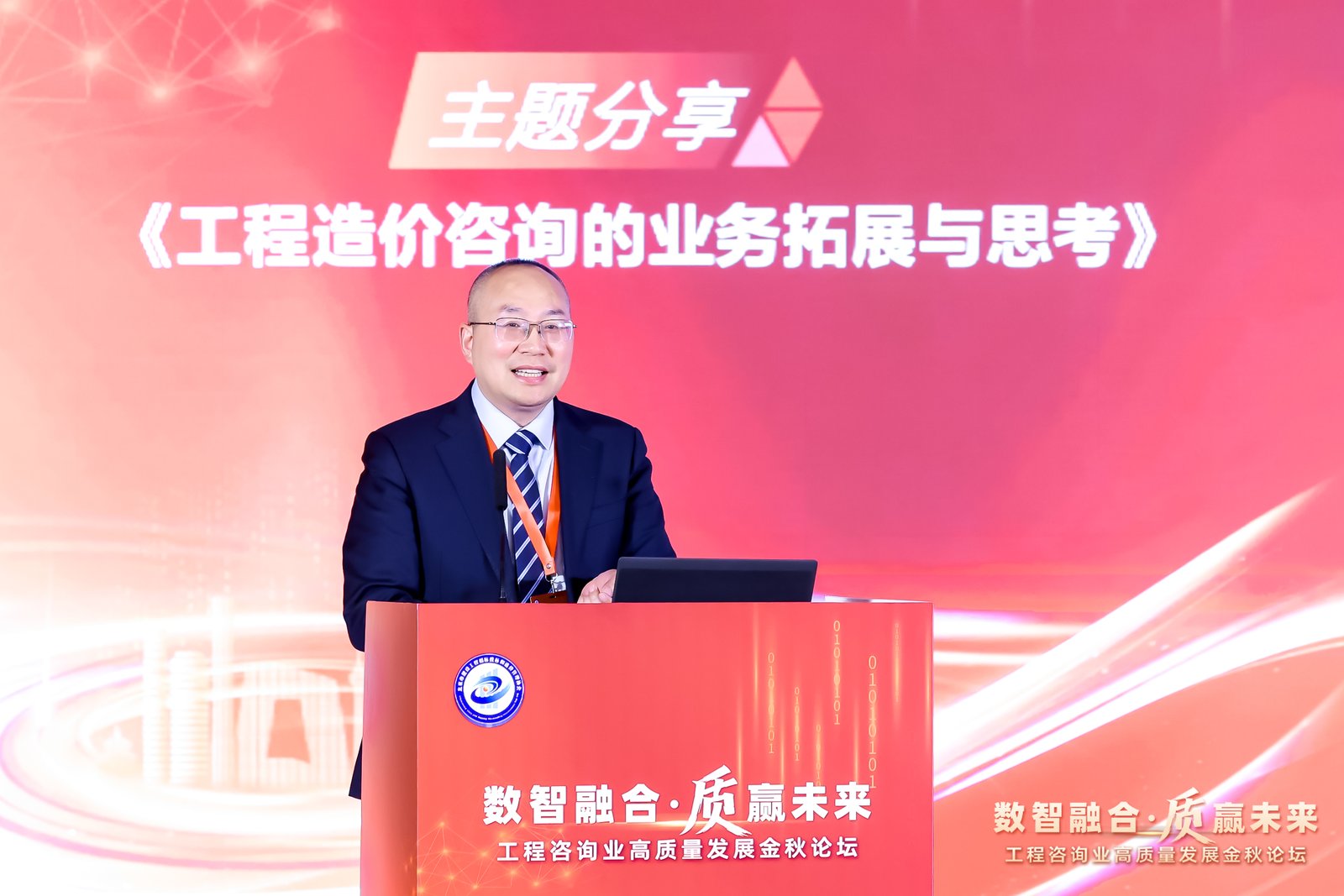 潘敏理事长围绕《工程造价咨询的业务拓展与思考》发表见解。他指出,在固定资产投资放缓和数字化浪潮双重冲击下,行业价值面临重构。企业必须从传统的“数据搬运工”转向“价值发现者”,打破专业、项目和企业的边界,实现能力、视野和经营模式的跨越。他强调,数字化转型是生存和发展的必由之路,必须构建技术、服务和生态护城河。
