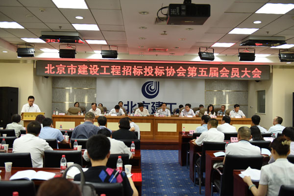 北京市建设工程招标投标协会(以下简称协会)第五届会员大会于6月28日在北京建工大厦顺利进行。市住建委委员陈现忠、市标办、市交易中心、各区县标办及园林、军队、民航、铁路标办相关领导,以及市社团办、市建筑业联合会领导,会员单位代表一百六十余人参加了此次会议。会议由协会副会长张传成主持。