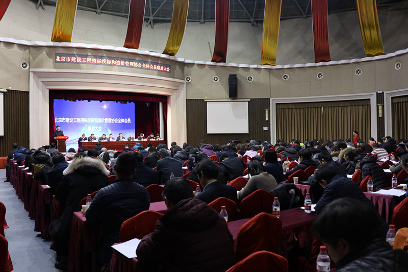 北京市建设工程招标投标协会(以下简称“京招协”)和北京市建设工程造价管理协会(以下简称“京价协”)全体会员联席大会(以下简称“联席会”)于2018年1月4日在北京建设大厦召开。市住建委委员陈现忠、市标办主任褚建好、市造价处处长冯志祥、市建管中心主任徐良、市交易中心主任胡平有、市住建委人事处副处长孔怡、市住建委市场处张超、京价协理事长兼联席会主席林萌、京招协会长兼联席会副主席李仁友、各区标办和交易中心、外省市驻京建管处等相关单位领导以及京招协和京价协副会长、会员单位代表、调解中心调解员等近五百人出席。会议由联席会副主席李仁友主持。