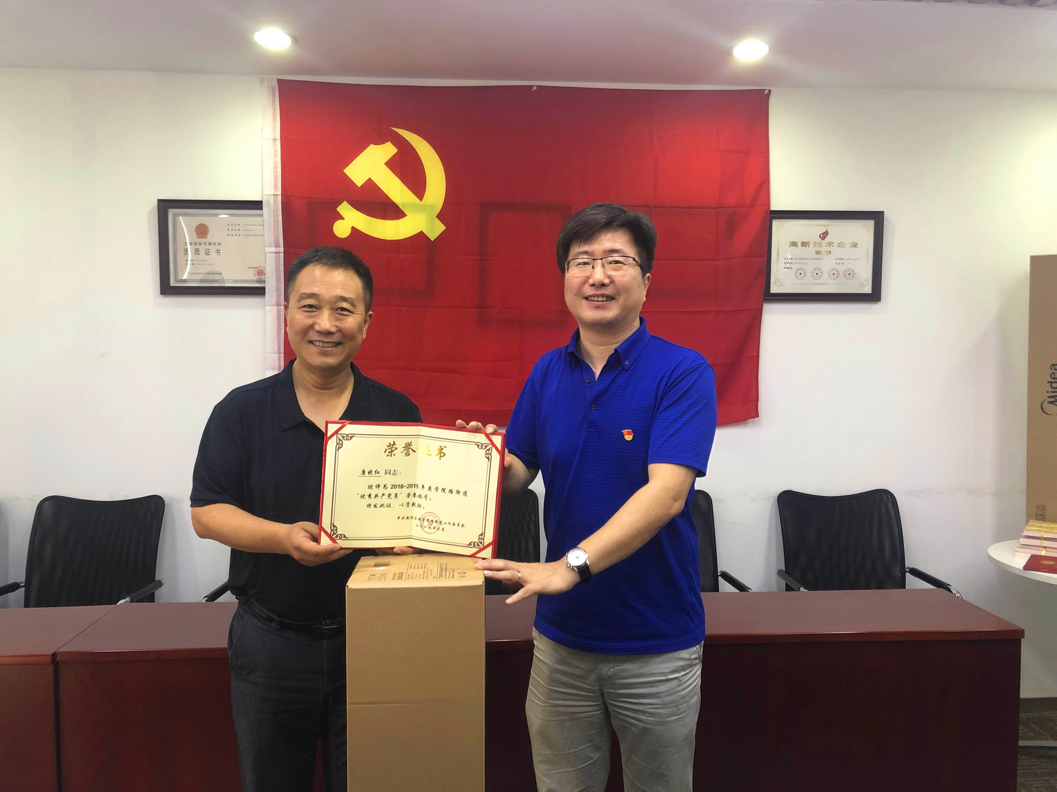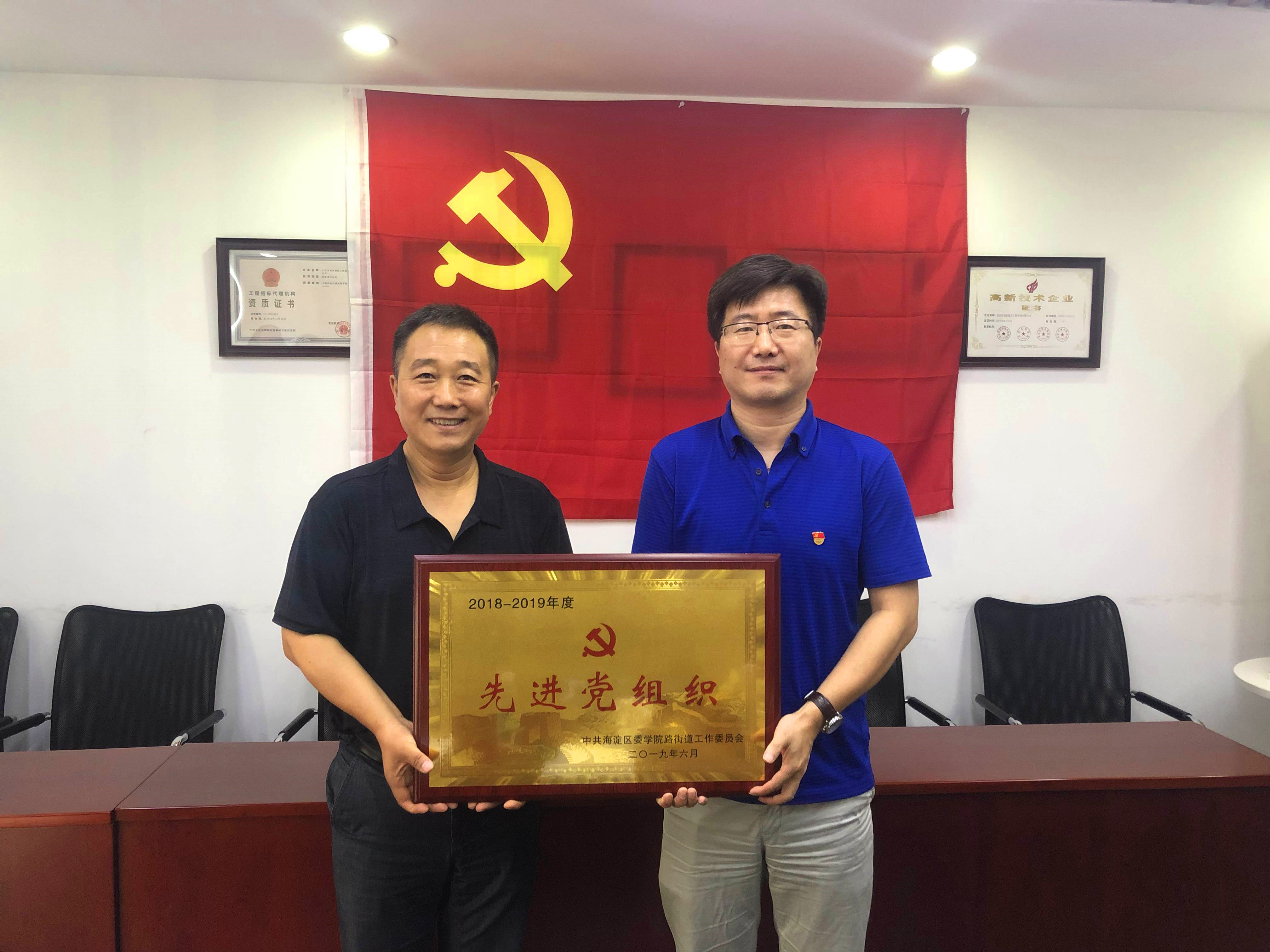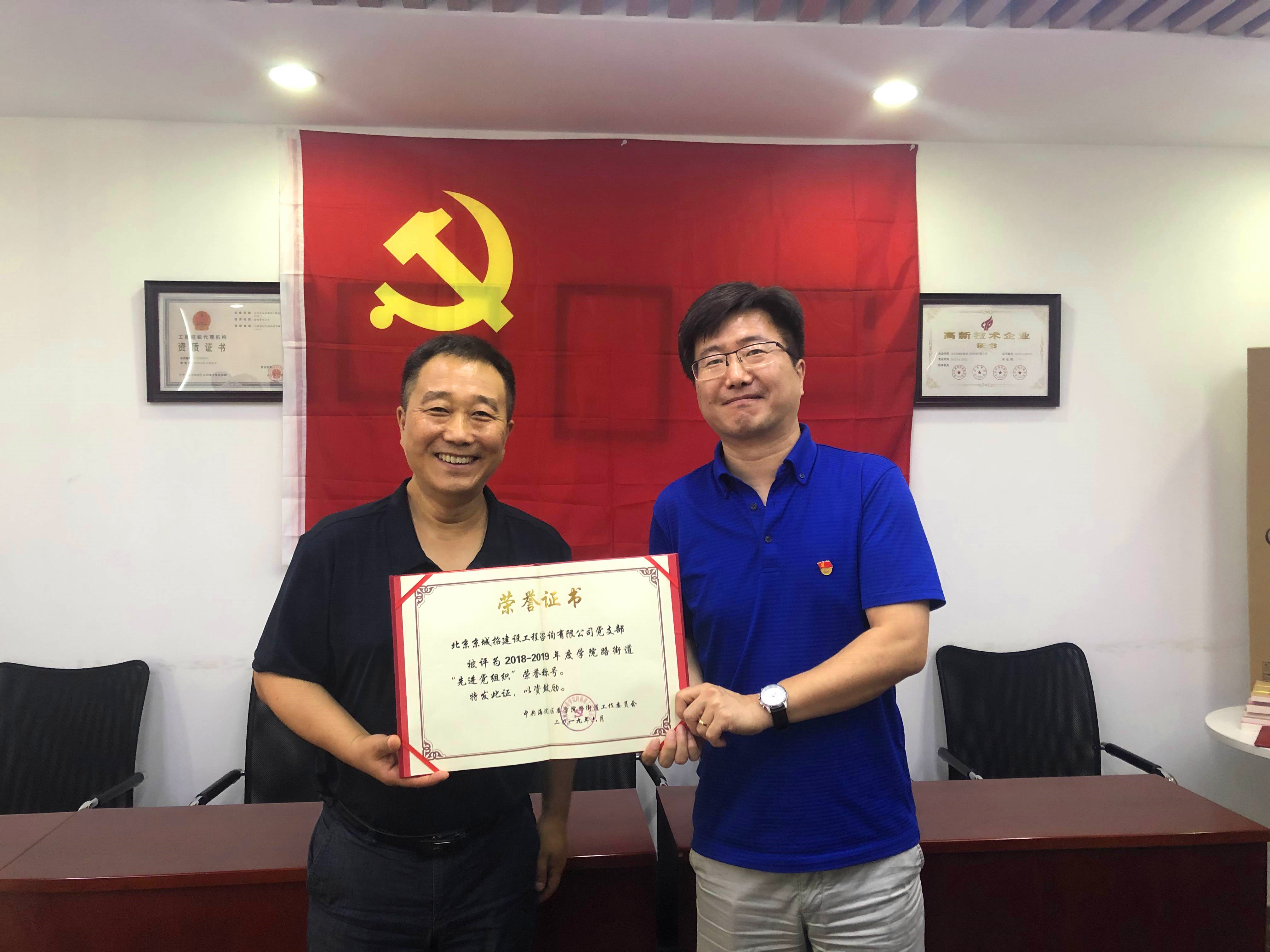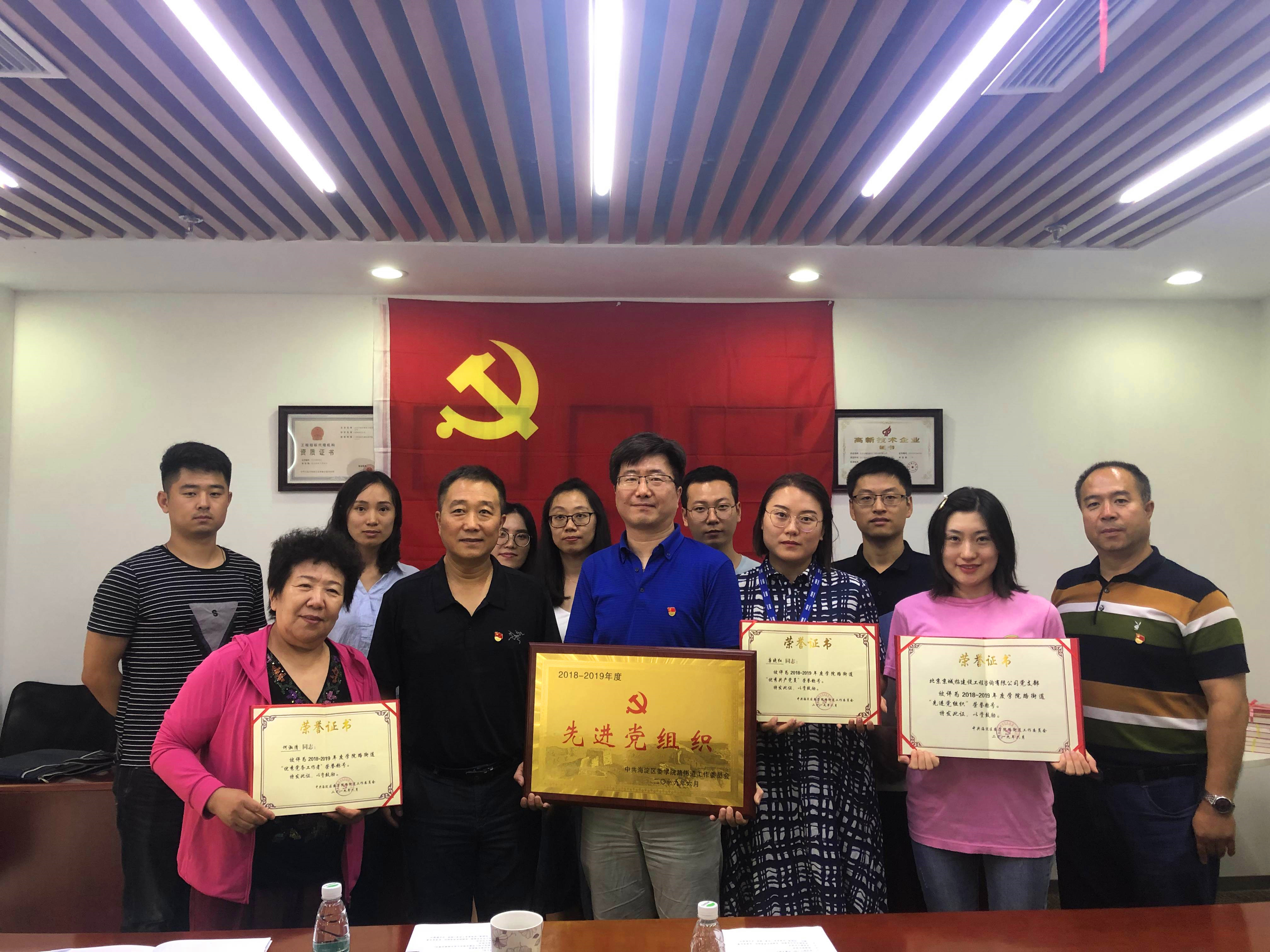 最后一项议程是由李主任为2018-2019年度先进党组织京城招党支部,优秀共产党员唐晓红书记颁发证书、挂牌,并与获奖人员合影留念。