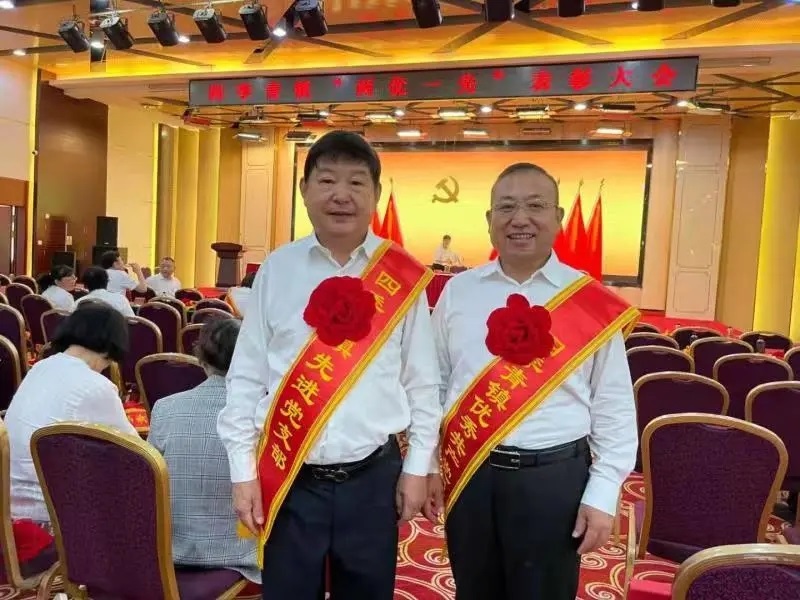 大会在雄壮《国歌》声中开始。镇党委副书记、镇长薛飞飞主持会议。镇党委副书记程刚宣读表彰决定,随后举行颁奖仪式。我集团公司党支部被授予2020-2021年度先进党支部荣誉称号并登台领奖;集团公司董事长李政被授予优秀共产党员光荣称号;党支部书记李杰被授予优秀党务工作者光荣称号。接下来为一批老党员颁发“光荣在党五十年”纪念章,当老人们登上主席台时,全场响起了经久不息的掌声,向老党员致以诚挚的祝贺。