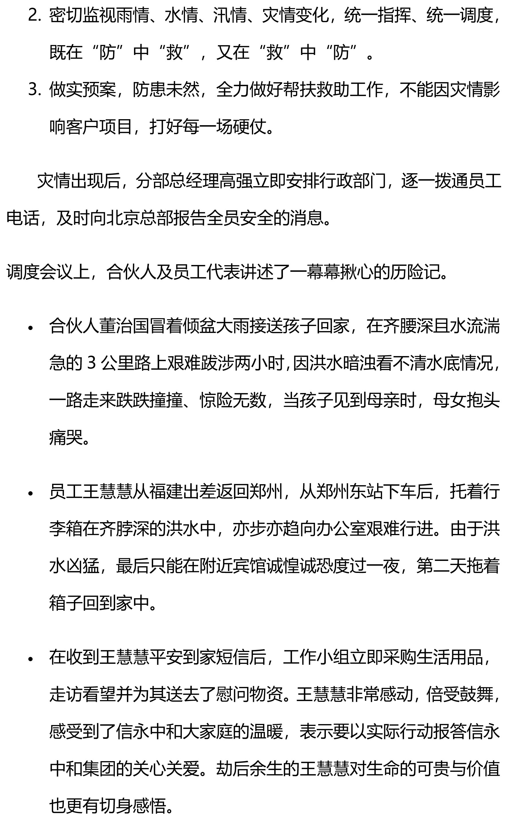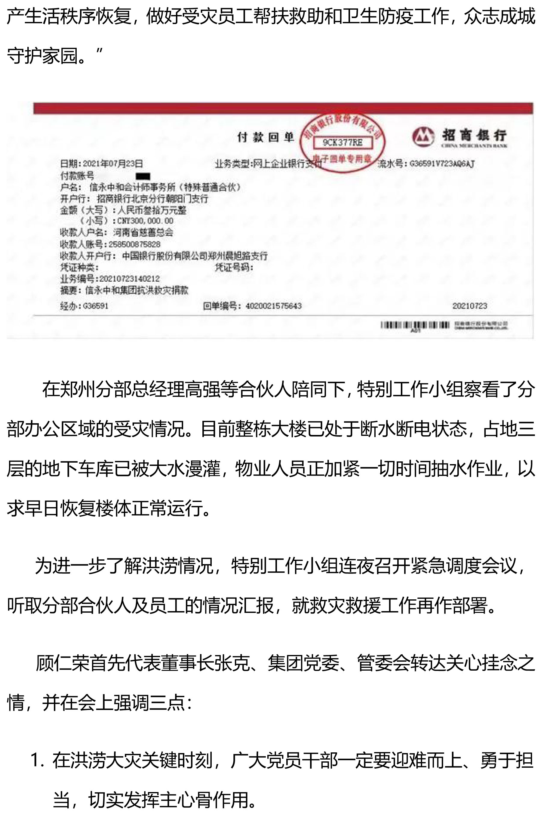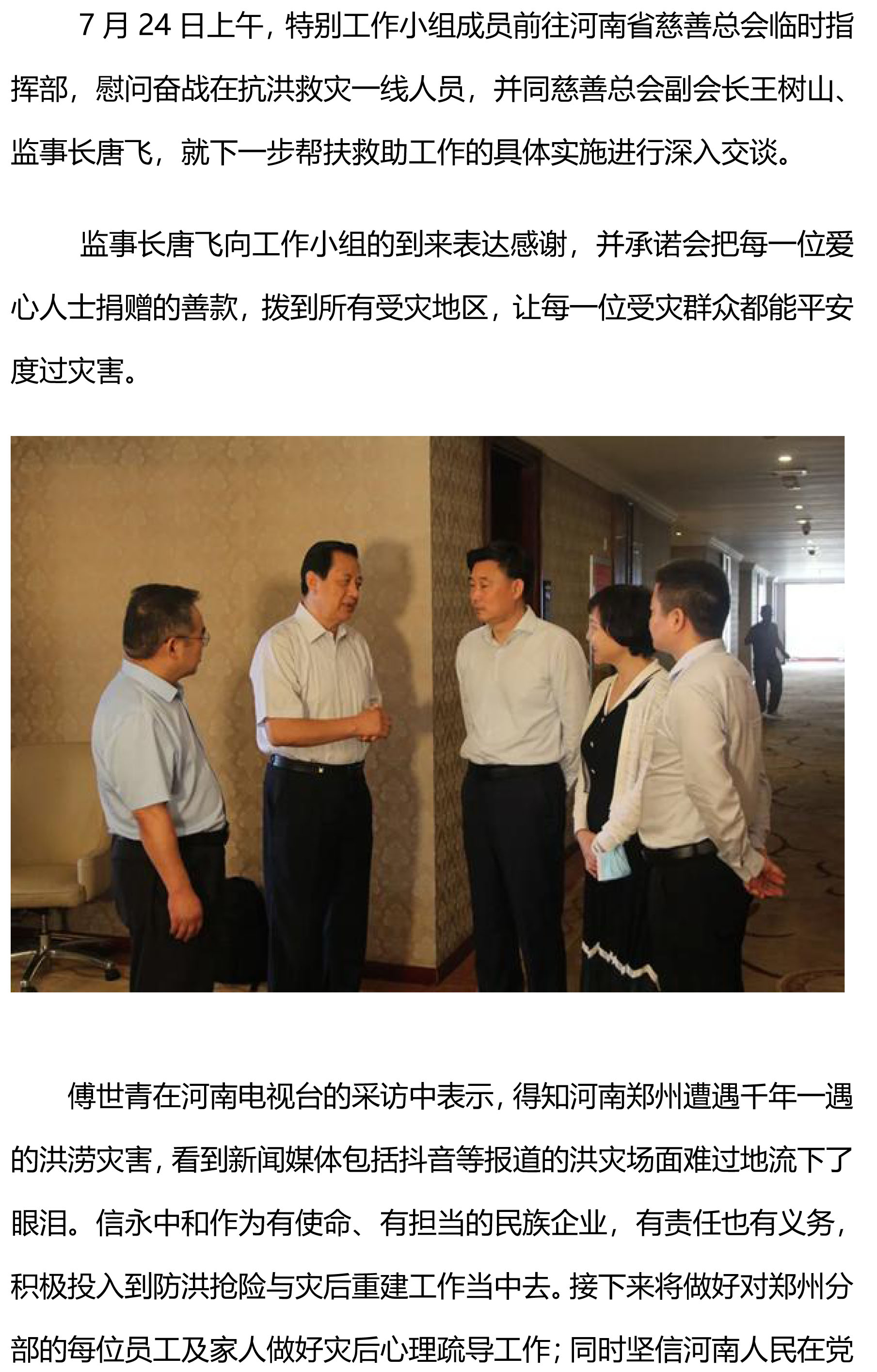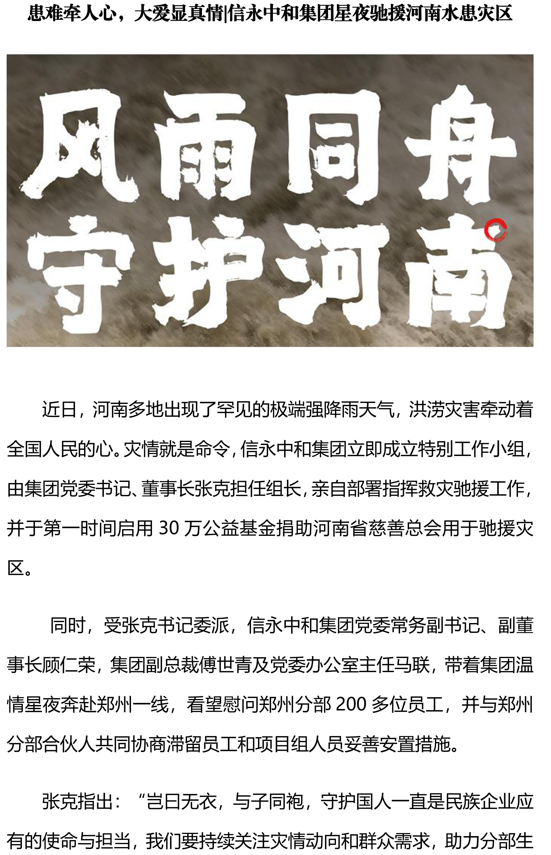患难牵人心,大爱显真情--信永中和集团星夜驰援河南水患灾区