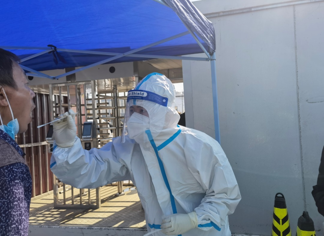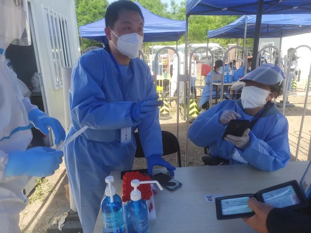 共产党员许解文等多名同志在某项目工地工作,在经过经开区建设局系统培训,并且在组织部备案后,他们逆流而上,不惧风险的配合专业医生对辛四路所有施工人员进行核酸检测,执行核酸样本采样、信息采集、维持秩序的任务,他们已成为该地区防控一线的主力军。