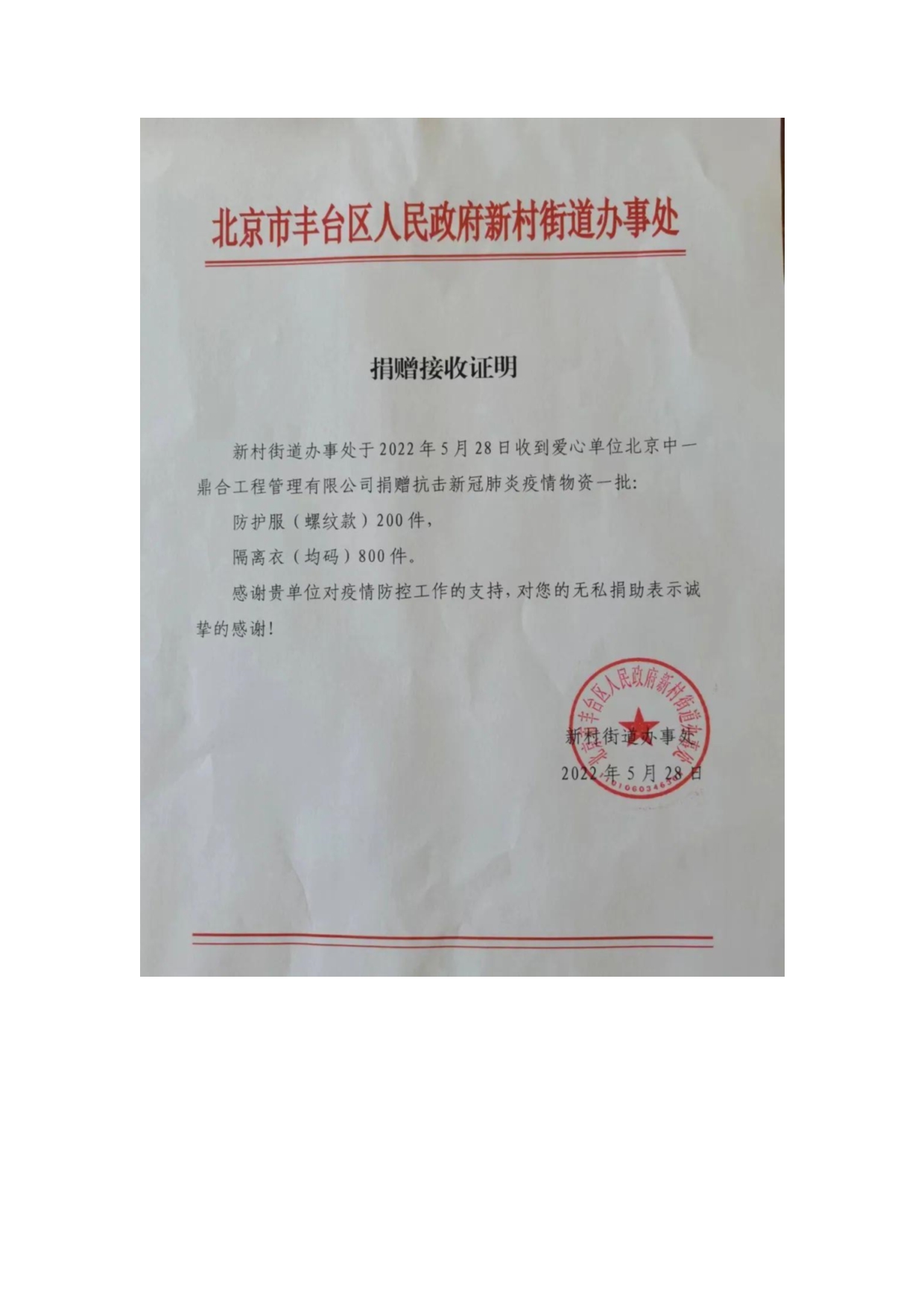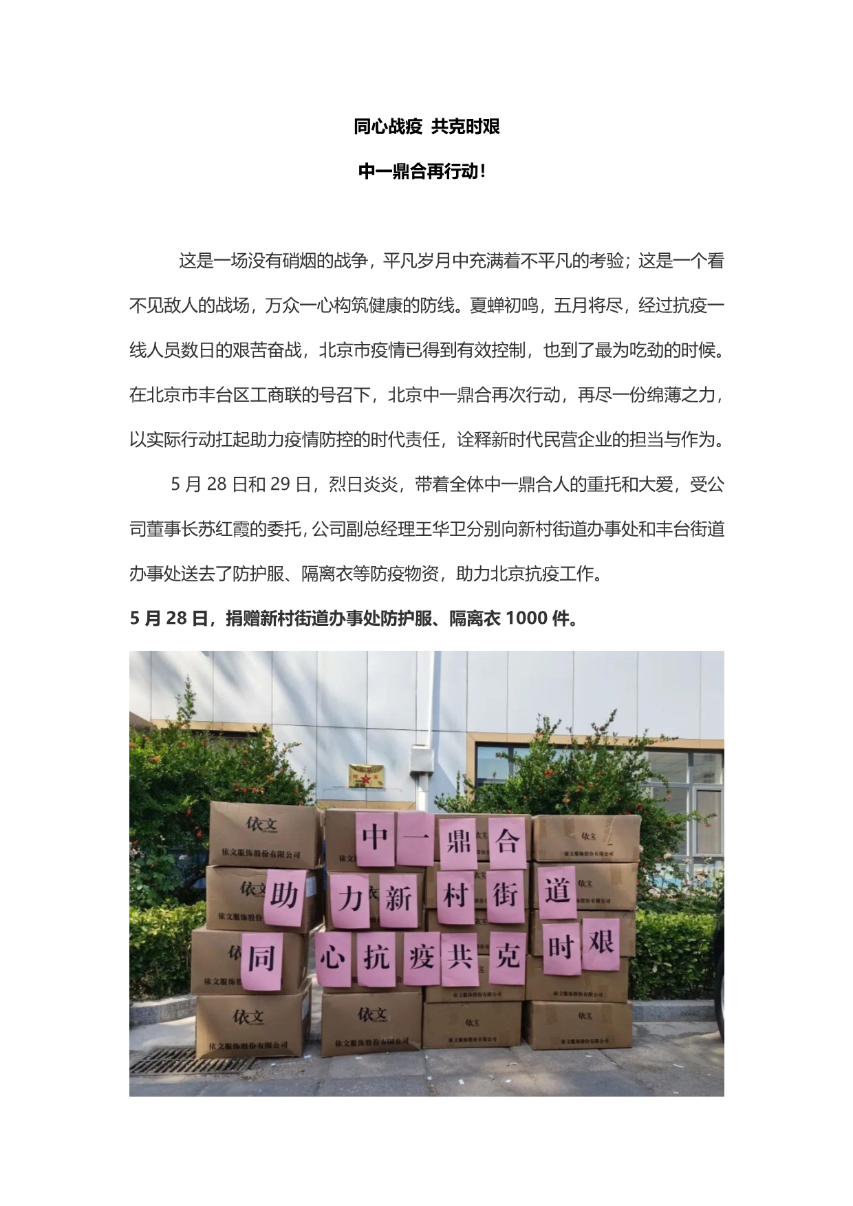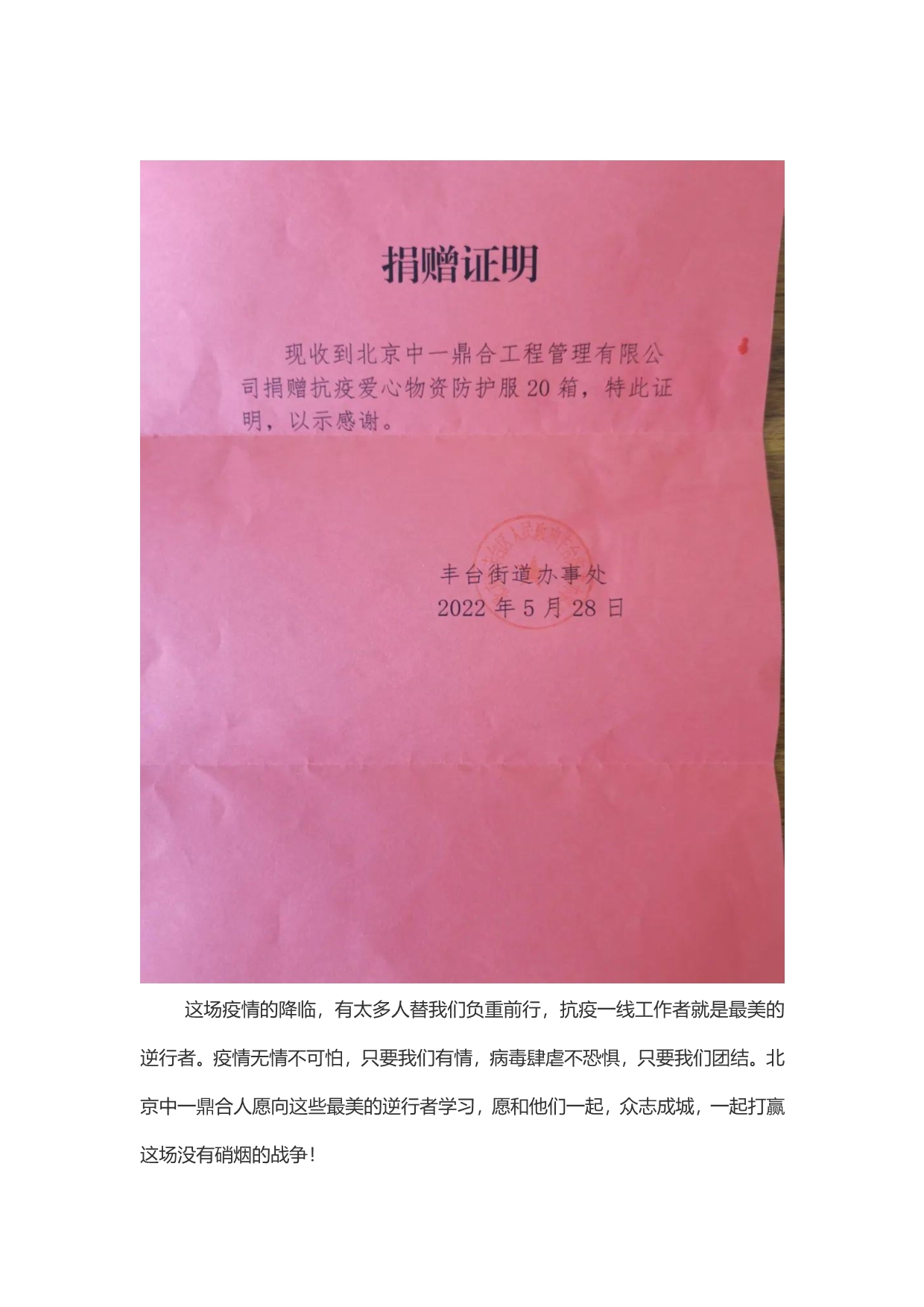 北京中一鼎合工程管理有限公司抗疫先进事迹