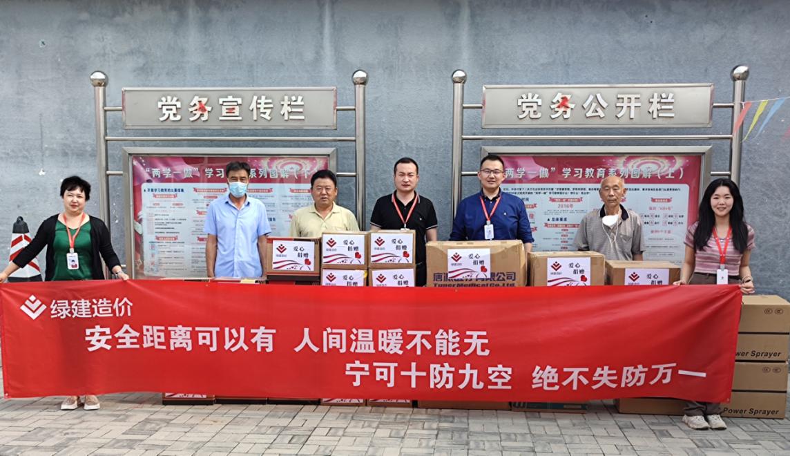 随着政府强有力的防控管理,如今北京的疫情逐渐平稳,但防控形势依旧充满挑战,疫情防控阻击战还在继续,疫情防控形势依然严峻。乡村街道为疫情防控阵地前沿,北京目前又正值酷暑,炎炎烈日给辛苦奋战的基层工作人员带来了不小挑战。2022年6月,当代绿建工程造价咨询(北京)有限公司深知防疫一线人员辛苦,迅速展开行动,紧急筹集一大批防疫物资,包括两台超大型喷雾式消毒机、4000只医用外科口罩、2000只医用手套、100套医用防护隔离服套装、60桶医用酒精和40桶消毒水在内的价值两万余元的防疫物资,由总经理崔同率队将防疫物资送到北京市大兴区礼贤镇东黄垡村村委会,支援村中防疫工作,为一线防疫人员提供安全保障。