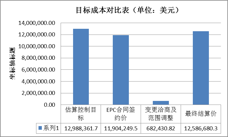 北京求实工程管理有限公司为该项目的全过程工程咨询顾问。总承包商为中国某国企建设集团,采用EPC交付模式,总承包合同采用FIDIC EPC银皮书。求实公司采用以投资控制为主线的全过程工程咨询服务模式。通过有效的成本调研及标准化的成本控制流程,最终项目成本目标值与结算值相当吻合,结算值比目标值低3.1%。投资控制理想。